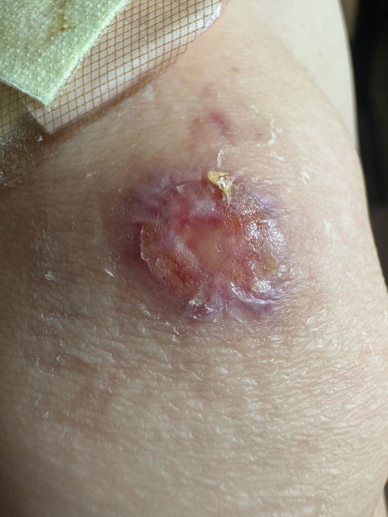 삼출물은 줄어들고 있는데 상처주변이 멍든것처럼 붉고 검게 변하는더 정상적인 회복 과정 인가요?