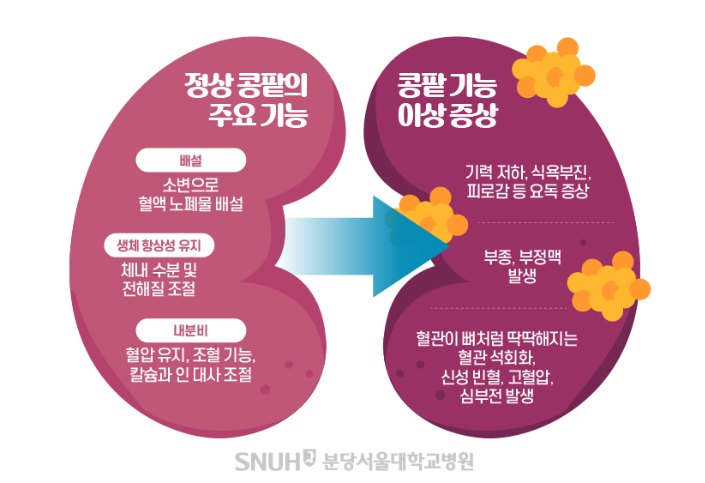 소변으로 여과를 하지 못하여 나타나는 증상입니다