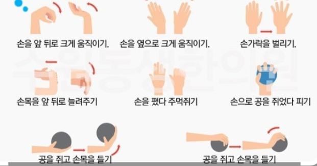 스트레칭은 팔을 뻗어 “손바닥을 위.아래로 젖혀 10초 유지“를 5회씩, 통증 없는 범위에서만 하세요.