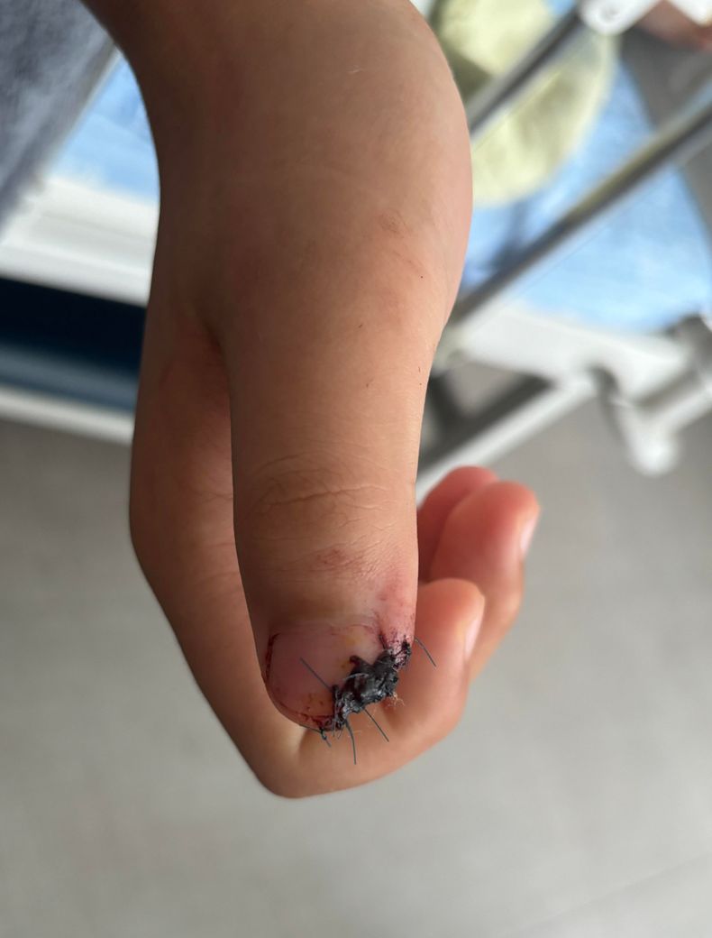 월요일에 오른손 엄지 손가락 끝부분 살이 떨어져나가서 국소피판술을 진행 하였습니다
