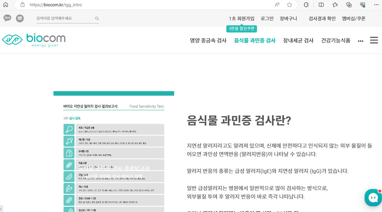 음식물 과민 증상 테스트 하는곳