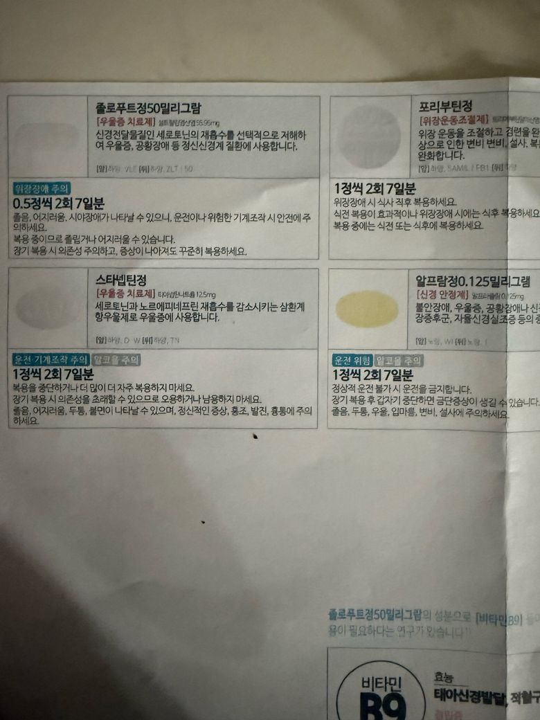 사진속에 역류성식도염으로 받은 약은 6시30분 경 이미먹었는데 그래도 구역감이 사라지지않네요.. ㅠㅠ 정신적으로 지금 힘들어서 그런지… 잘모르겠는데 ㅠㅠ 정신과약을 같이 병행해도되는지 아니면 특정약 한알만 먹어도되는지.. ㅠㅠ