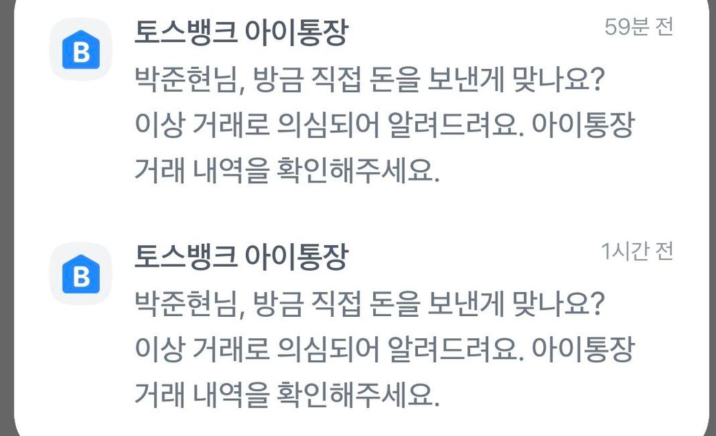 제가 토스계좌에 4만원 들어오고 다른계좌에 3분정도간격으로 3번 1만원정도씩 보냈는데