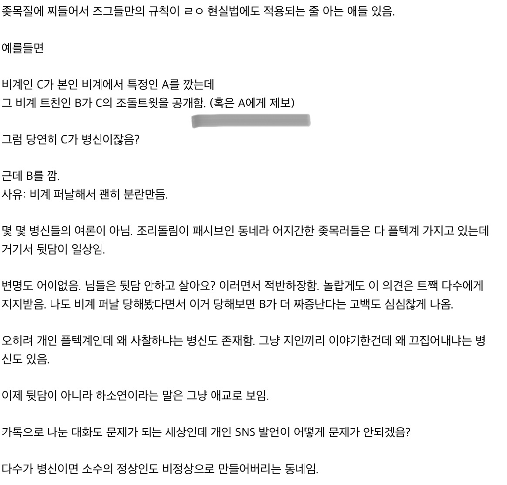C가 A를 비방해서 작성한 게시물을 캡처해서 A한테 디엠으로 제보하였습니다. (저 회색 줄 처럼요..)