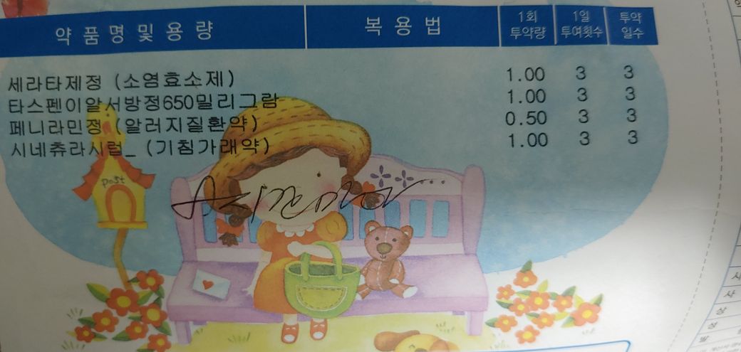 처방 받은 약과 함께 식후에 부루펜 계열의 약을 1정 복용하시기 바랍니다.