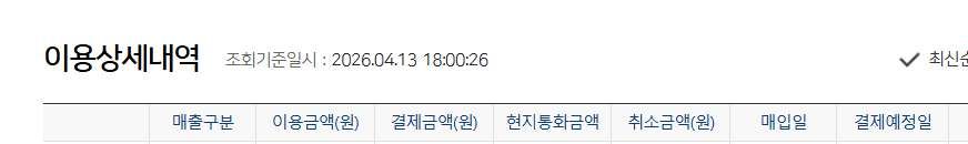 카드사에서 조회된 이용매출명세서입니다. 최종적으로 카드사에서 카드대금을 어느항목꺼로 정산할까요? 해외결제라 이용금액 결제금액 현지통화금액이 다달라요