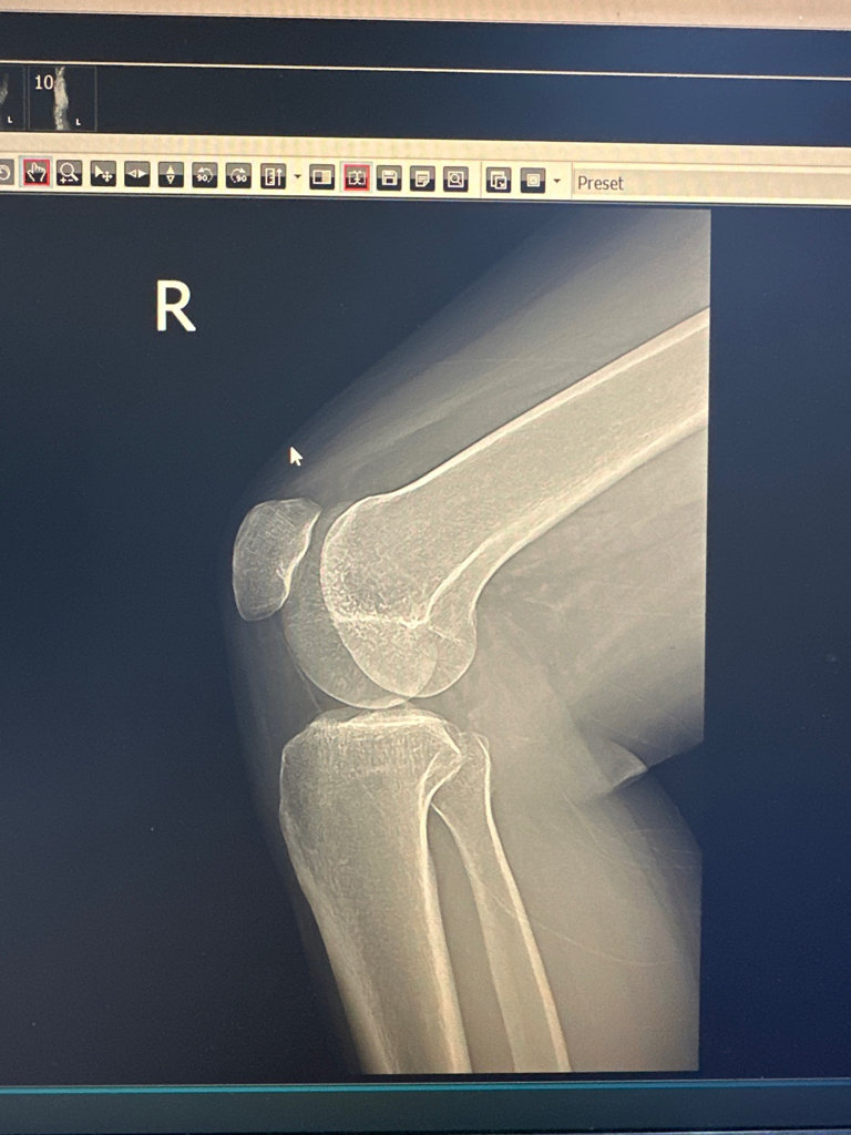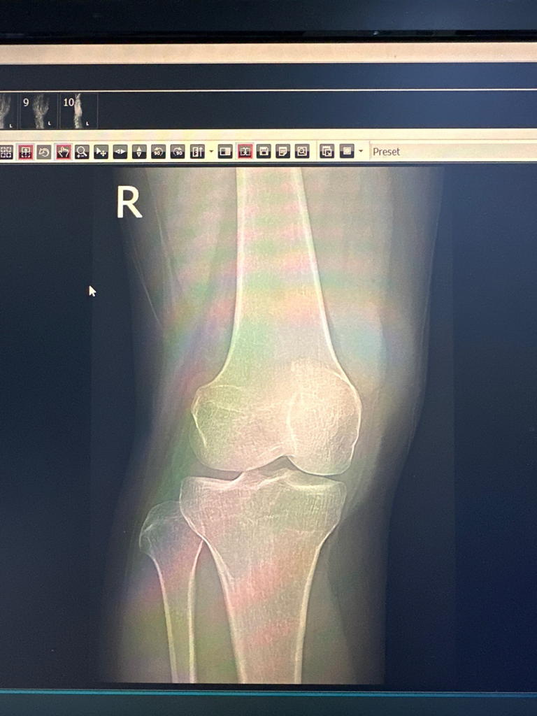 전공이 아니라 말씀드리기가 조심스럽지만 왼쪽 무릎 위쪽의 대퇴골에 덩이로 추정되는 것이 보이고 있어 추가검사를 요하는 것 같습니다. 골종양을 확인해야만 하는 상황이라 보입니다만 강력히 권한 정도가 아니라면 악성을 의심하시는 것 같지는 않습니다.