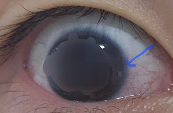 모니터 과사용, 건조, 눈 비비기 등으로 각막 상피가 미세하게 손상되면 작은 흰 점처럼 보일 수 있습니다.