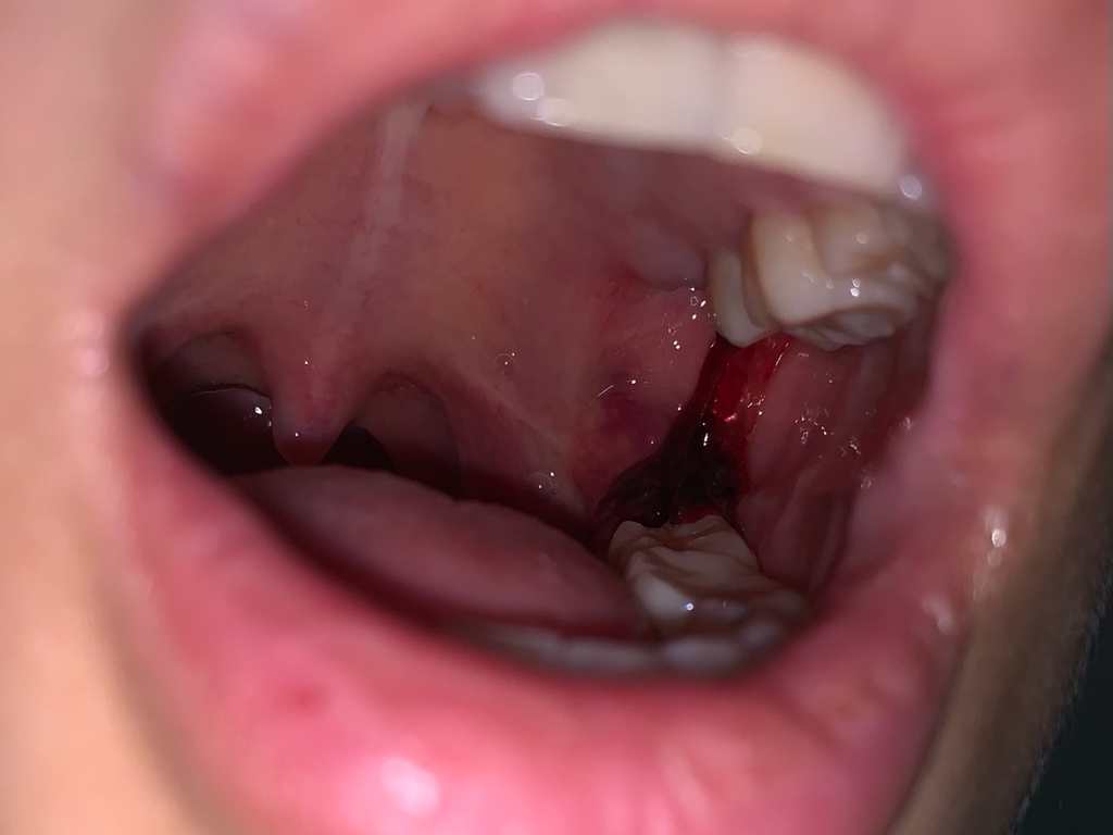 피떡(혈전)이 생기고 있는 과정인데 처음 지혈 시 충분히 거즈로 압박지혈 하지 않았거나 출혈이 완전히 멈추지 않았는데 거즈를 좀 빨리 뺀 경우 저렇게 퍼질 수 있습니다. 피떡을 굳이 일부러 제거하거나 빨아들일 필요는 없습니다. 본인 피이므로 목으로 넘어가서 어쩔 수 없이 흡입하게 되는 경우도 큰 문제는 없습니다. 멸균 거즈로 다시 잘 누르고 거즈 밖으로 튀어나온 피떡만 조금 제거해주는 것 정도는 괜찮을 것 같습니다.