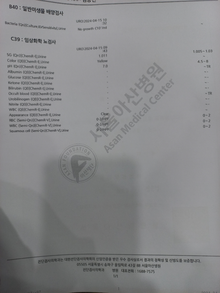 세균뇨도 아니고 모든 수치는 정상범위안에 존재합니다.