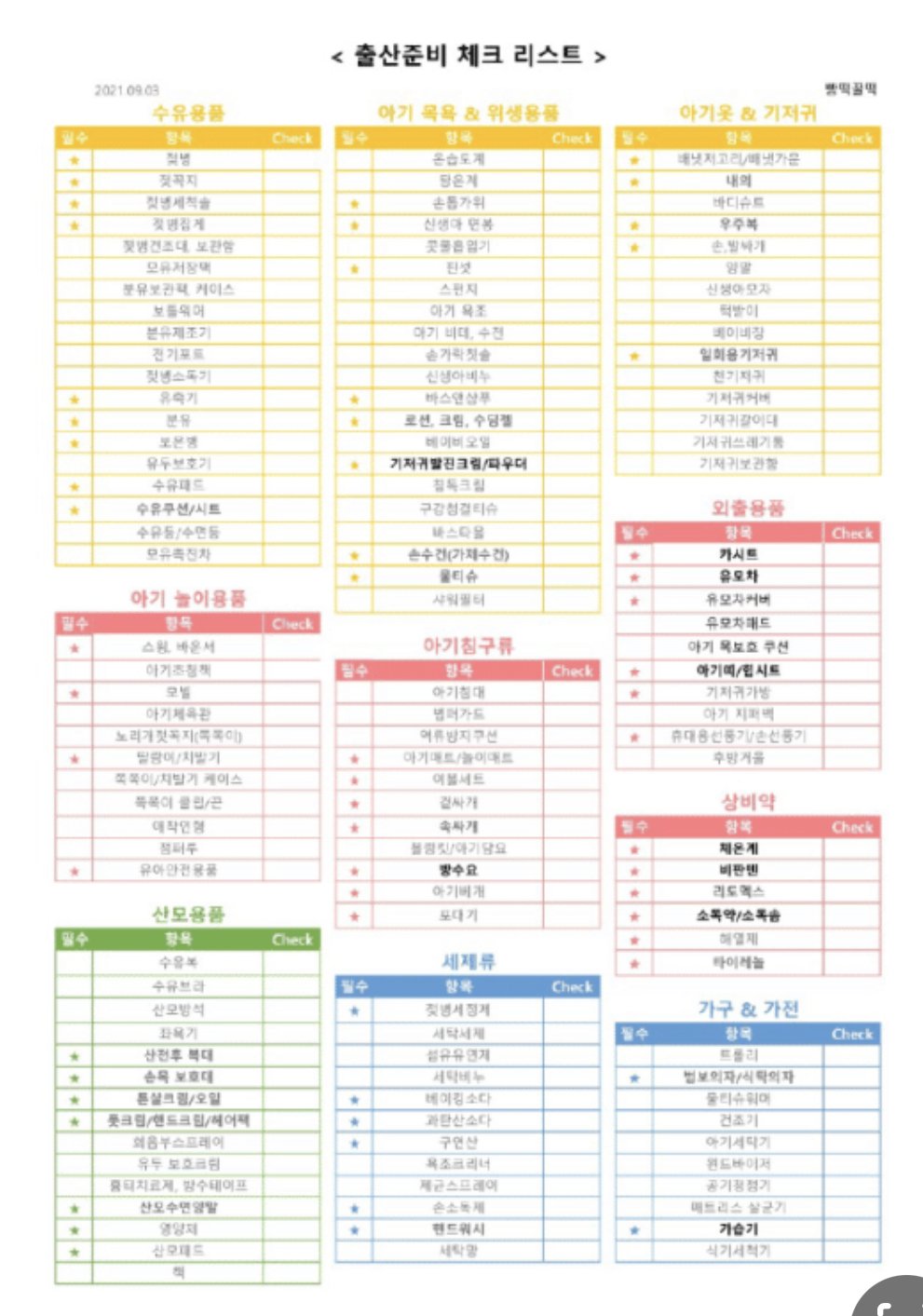 1. 신생아 의류: 배냇저고리, 신생아 내의, 신생아 모자, 양말, 턱받이, 손싸개, 발싸개, 일회용 기저귀