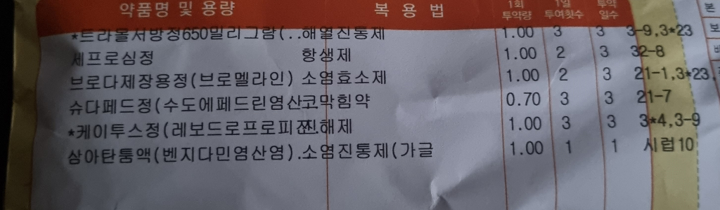 트라몰서방정이 타이레놀이랑 같은 성분의 약이구요.