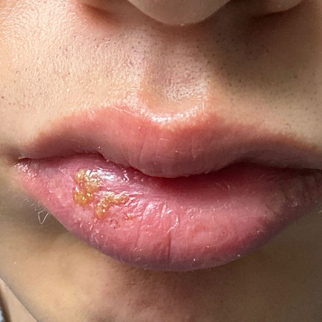 반면, 사진처럼 국소적으로 노란색 딱지가 형성된 경우에는 단순 구순염, 세균성 감염이 동반된 구순염(농가진 양상), 자극이나 상처 후 2차 감염 가능성도 충분히 고려됩니다. 특히 면도, 입술을 자주 만지는 습관, 피로, 면역 저하 후에도 이런 형태가 나타날 수 있습니다.