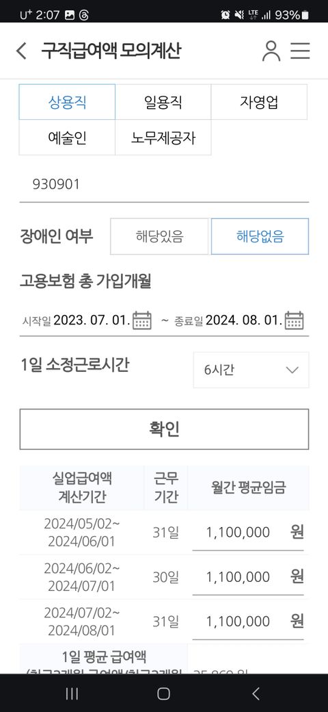 사진 첨부한 것 처럼 결과가 나옵니다 그럼 전 한달에 얼마를 받게되는걸까요?