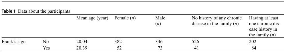 질환이 없는 사람이었음에도 적지 않은 인원에서 프랭크 징후가 관찰이 되었습니다.