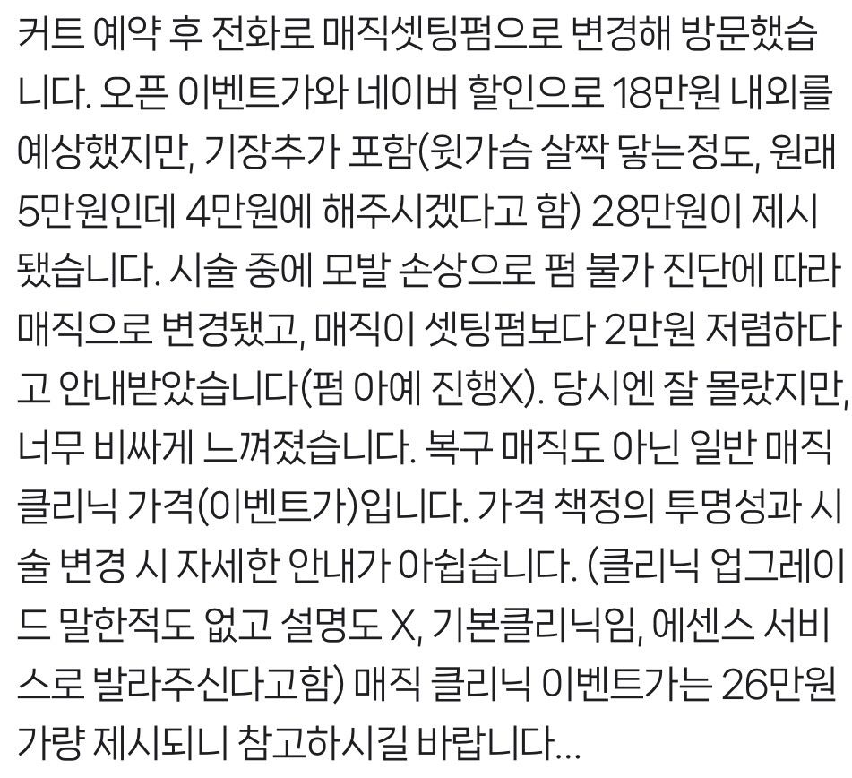 떳떳하면 전화받으라고 하시고, 제가 뭐 연락해서 환불해달라는것도 없었습니다. 근데 중단발 기장에 일반 매직을 했는데 강남권도 아니고 홍대도 아닌데 26만원 조금 넘게 나왔어요.. 진짜 억울해죽겠는데 협박까지 당하니까 무섭네요