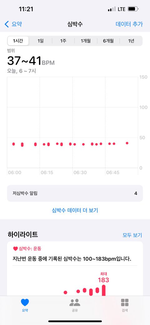 최근 수면 간 저심박수 경고가 몇 차례 있었는데
