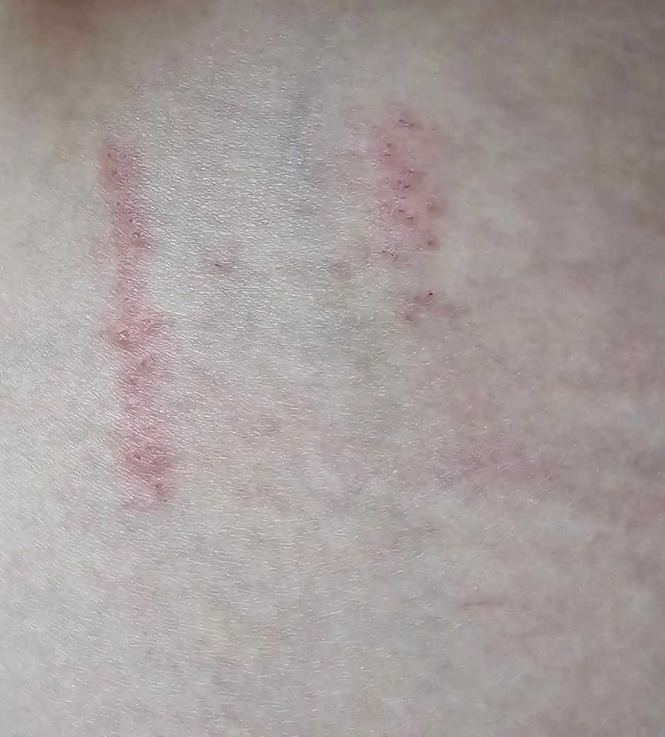 오른쪽 엉덩이 쪽에 긁힌? 긴 상처 같은게 보이는데 긁힌건지 수포가 터진 자국인지 모르겠는데 길게 나있어요 ~ 몇년전에 대상포진 예방접종 맞았는데요
