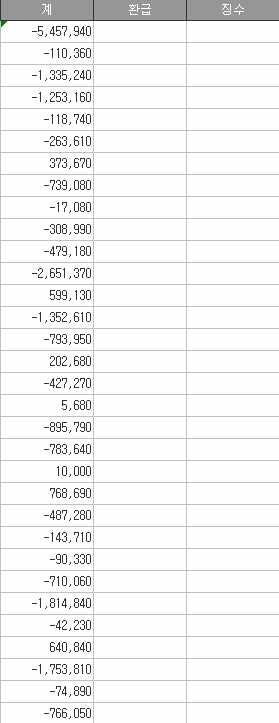 위 사진상에 계 항목들의 값을 -금액은 환급으로, +금액은 징수로