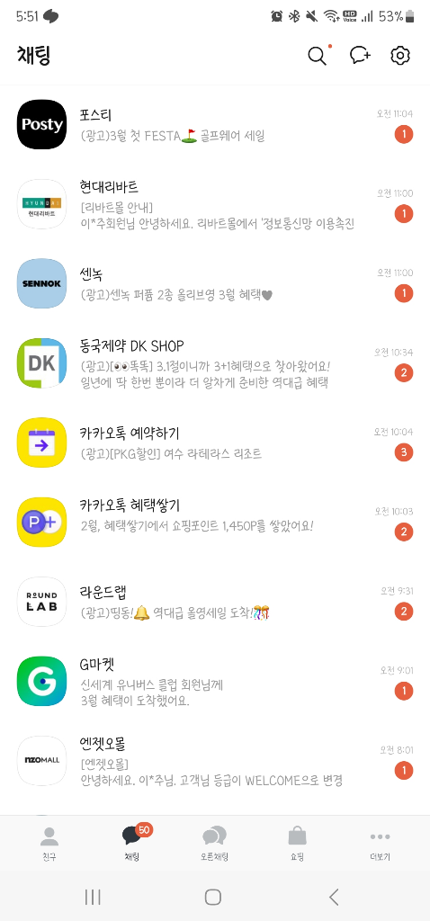 카카오톡 채널 추가가 되어 있거나 채널 추가가 되어 있지 않더라도 개별 채널에서 광고 알림 메시지가 오는 것이기에