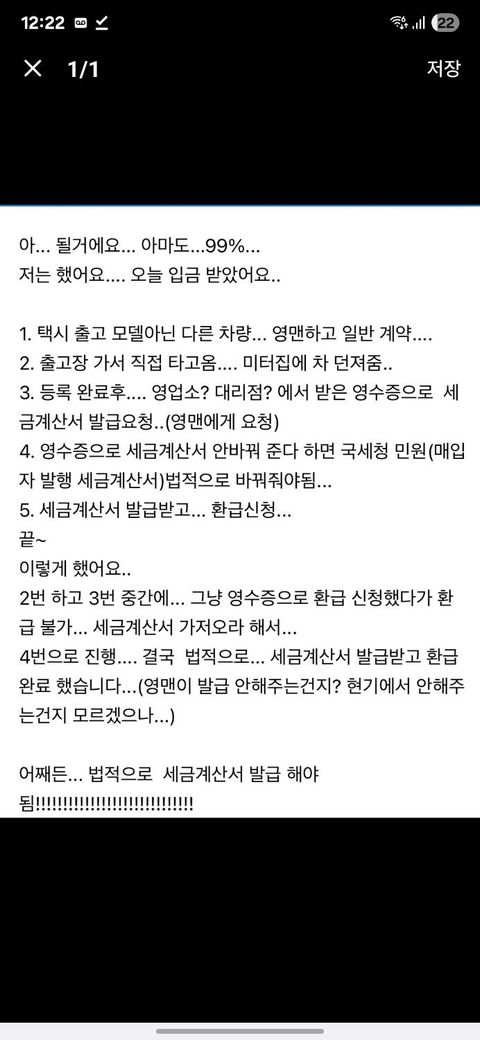 개인택시 전기차 출고 부가가치세 사후환급 질문
