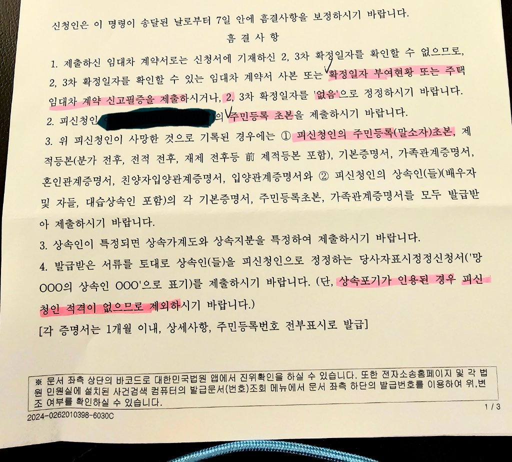 2. 상속포기한 사람들의 경우는 제출하지 않아도 되지만 한정승인신고를 한 사람들은 일단 상속은 하되 책임만 제한되는 자들이므로 관련 서류를 제출하시고 당사자 표시정정신청을 하셔야 할 것으로 보입니다.