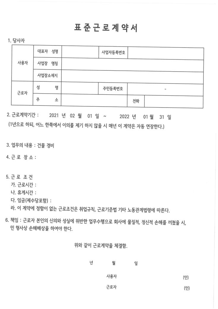 건물 경비하시는분과 표준근로 계약서를 진행했습니다.