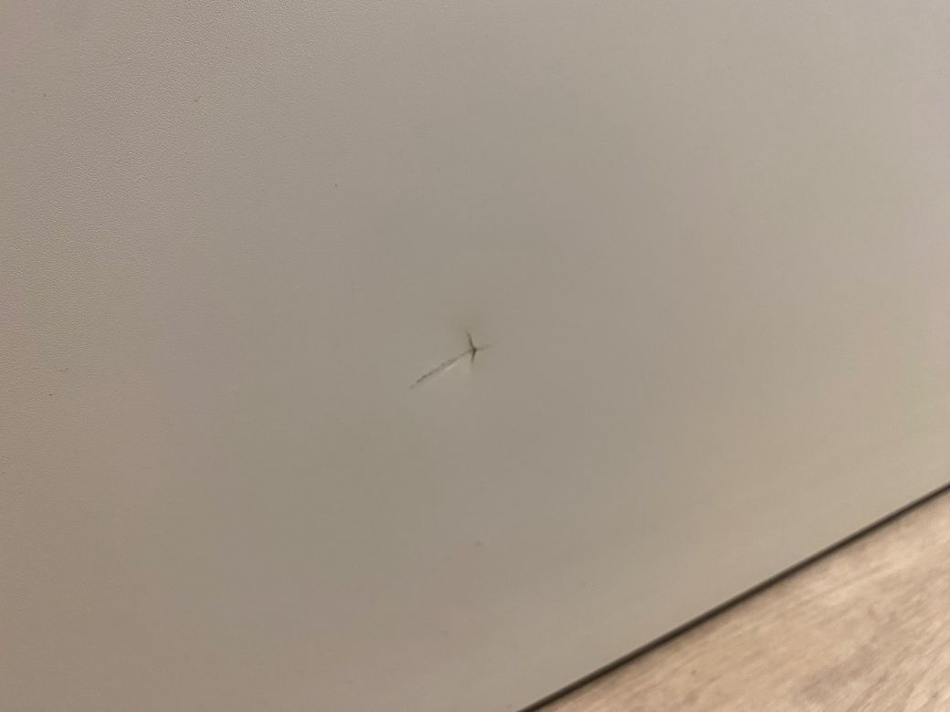 물건을 정리하다가 실수로 바닥에 떨어뜨렸는데 자세히 보니 문에 찍힘 자국이 났어요..