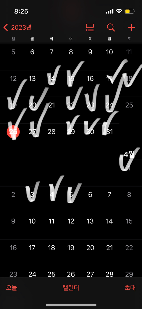 3월14일 첫근무 시작해서 회사와 이해관계가 맞지 않아 4월 5일자로 퇴사합니다 하얀부분으로 체크한 날이 근무 날짜입니다