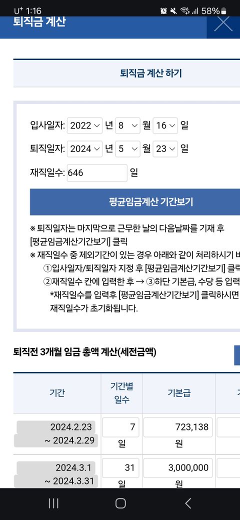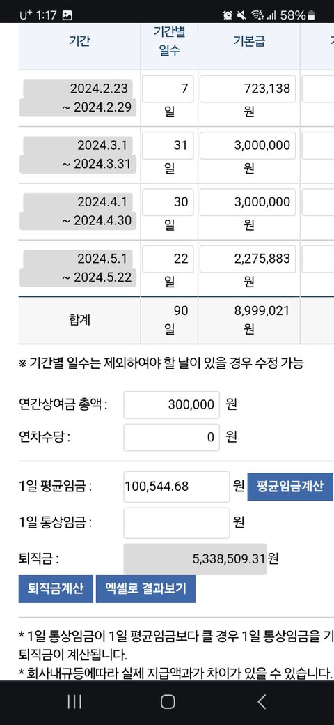 퇴직금 계산 이렇게 하는것이 맞나요?
