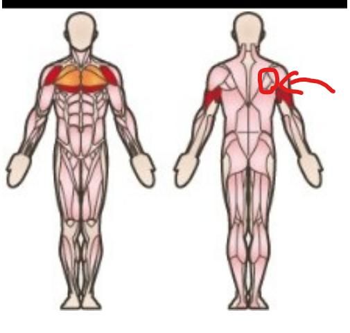 그런데 말씀하신 동그라미 친 "어깨 뒤쪽 부위"가 자극된다면, 후면 삼각근이나 견갑골 주변 근육(능형근, 극하근 등)에 무리가 가고 있을 가능성이 있습니다. 이는 일반적으로 딥스를 할 때 팔꿈치를 과도하게 벌리거나, 어깨가 앞으로 말리는 형태(견갑 안정화 부족)로 수행할 때 발생할 수 있어요이런 자극은 자세가 잘못되었거나, 또는 어깨의 가동성과 안정성이 부족한 상태에서 보상 움직임이 일어난 결과일 수 있습니다. 팔꿈치는 몸통에 가까이 두고, 어깨를 아래로 끌어내리며(견갑 하강), 가슴을 살짝 내민 상태로 운동하는 것이 이상적입니다. 후면 어깨 통증이나 자극이 계속된다면 딥스를 잠시 중단하고, 어깨 안정화 운동(페이스풀, 스캐풀라 푸시업 등)을 병행해주는 것도 좋아요