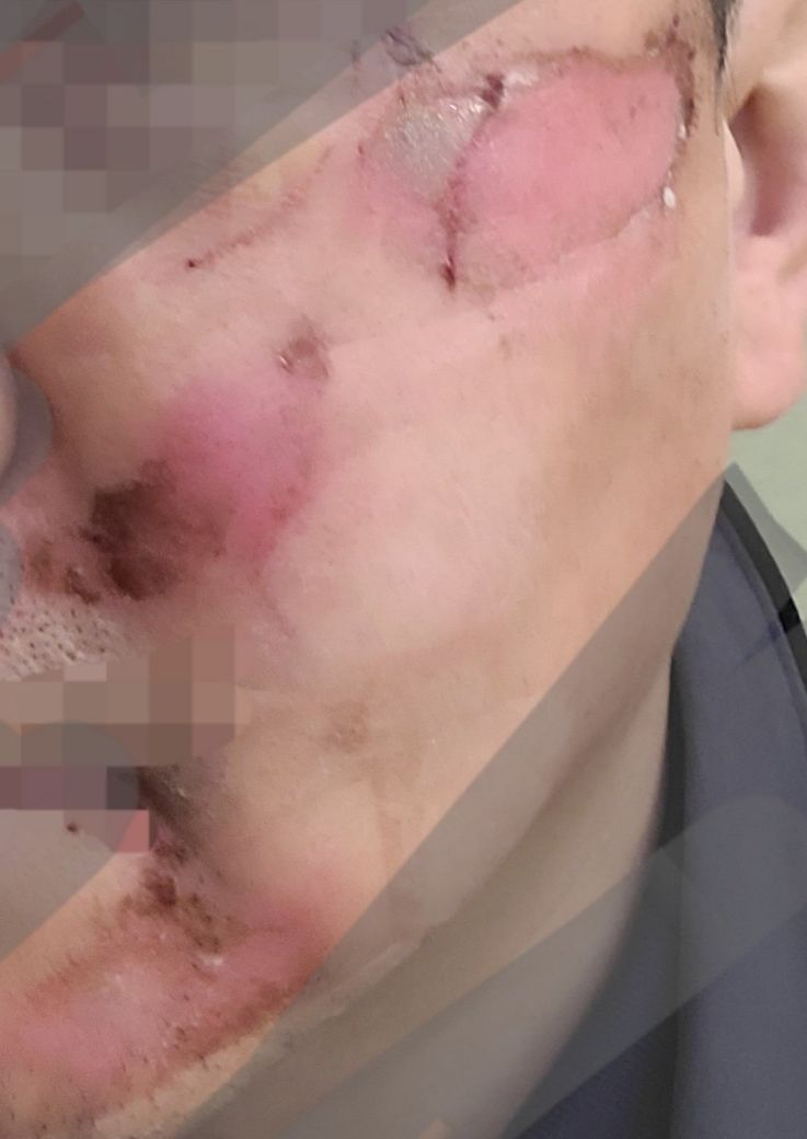 질문하신 내용에 대하여 아래와 같이 답변 드립니다.사진상으로는 표피가 박리된상태로 보이는데 정확한 손상정도는 피부를 깨끗하게 세척을 해야 볼수 있을것 같습니다.