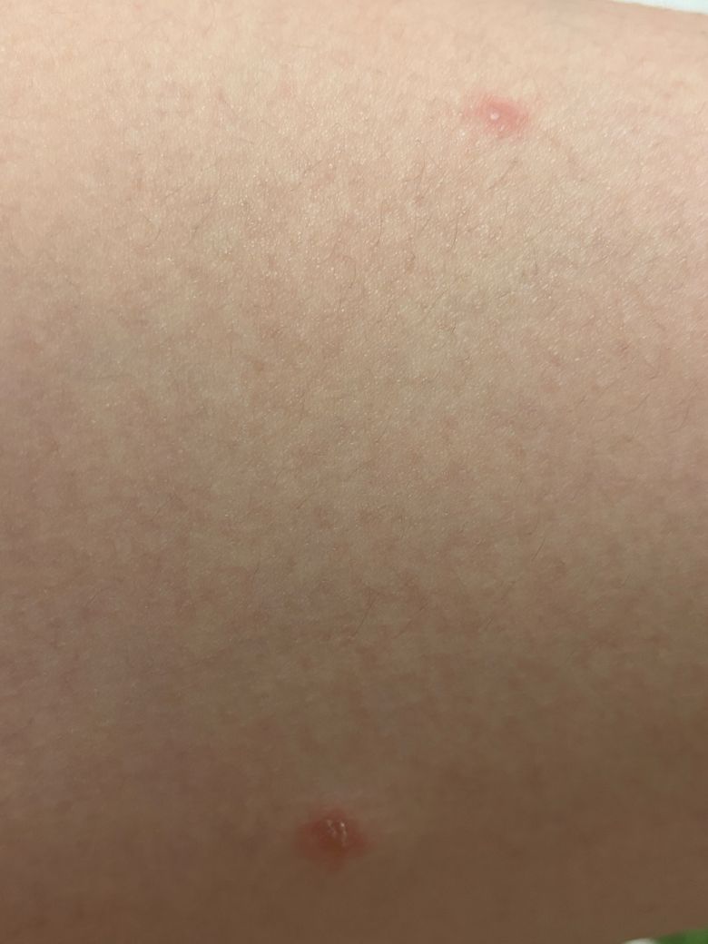 허벅지 부근에 5일 전 즈음 갑작스레 볼록한 반점 두 개가 올라왔다가 점점 가라앉는 중입니다. 크기는 새끼손톱보다 조금 큽니다.