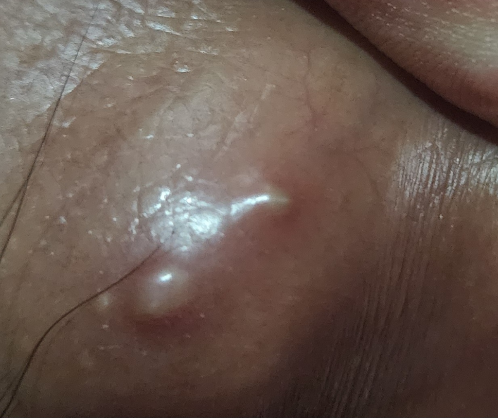 곤지름 병변으로 보이지는 않습니다.