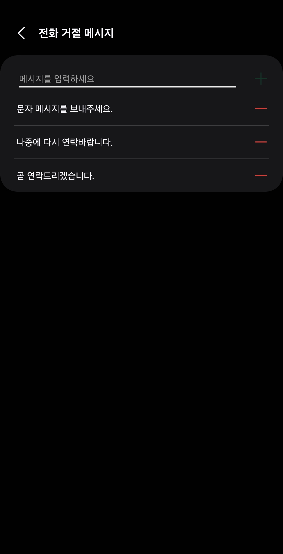 안드로이드전화 앱을 엽니다.오른쪽 상단의 세 개의 점(메뉴 아이콘)을 클릭합니다.설정을 선택합니다.전화 응답 및 거절 또는 자동 응답 메뉴를 찾습니다. (기기마다 메뉴 이름이 다를 수 있습니다)자동 응답 또는 거절 메시지를 선택하고, 원하는 메시지를 설정합니다.