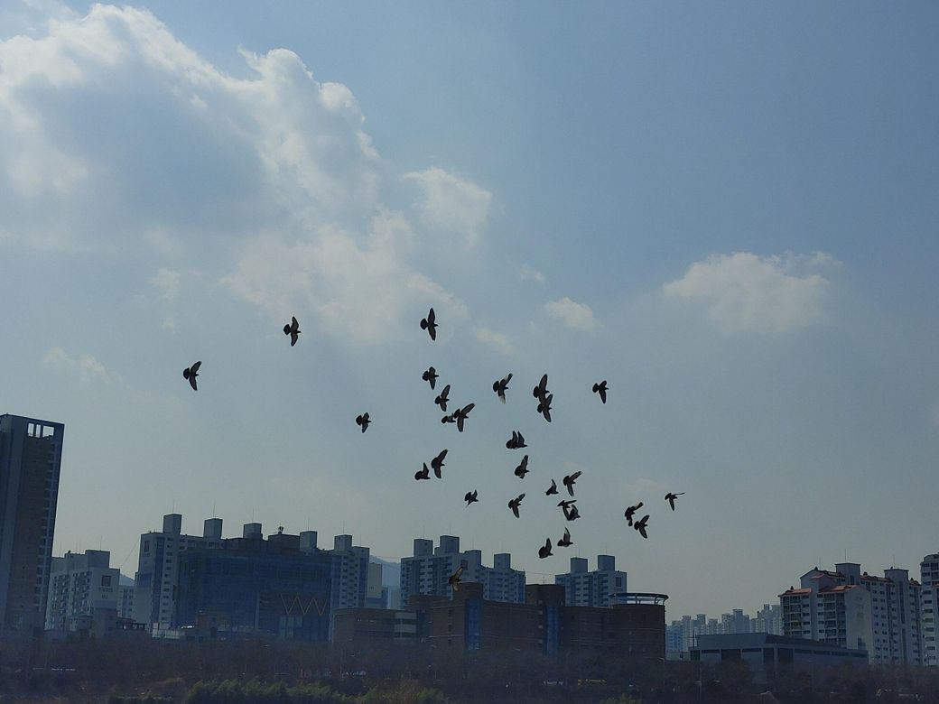 그래서 시골이나 강변공원에 가서도 비둘기들은 사람이 와도 가로등이나 전봇대에서 퍼드득 내려오고요.