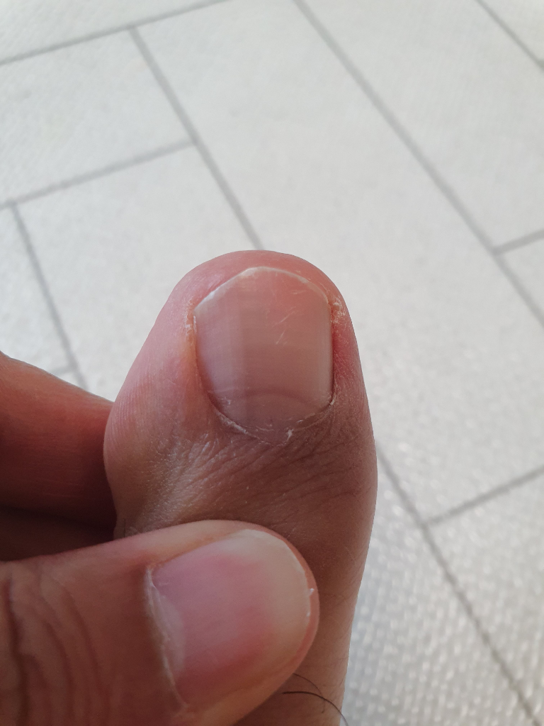 해당 발톱 뿌리에 물리적 손상, 감염이 발생했을 가능성이 있습니다.