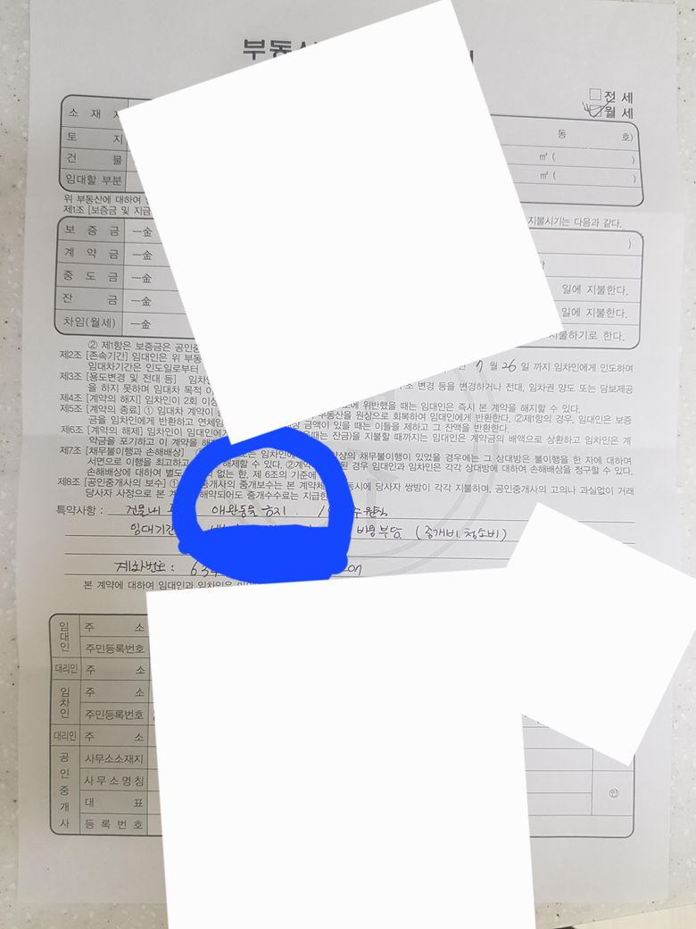 원룸입주할때 계약서를 작성 하였고 애완동물은