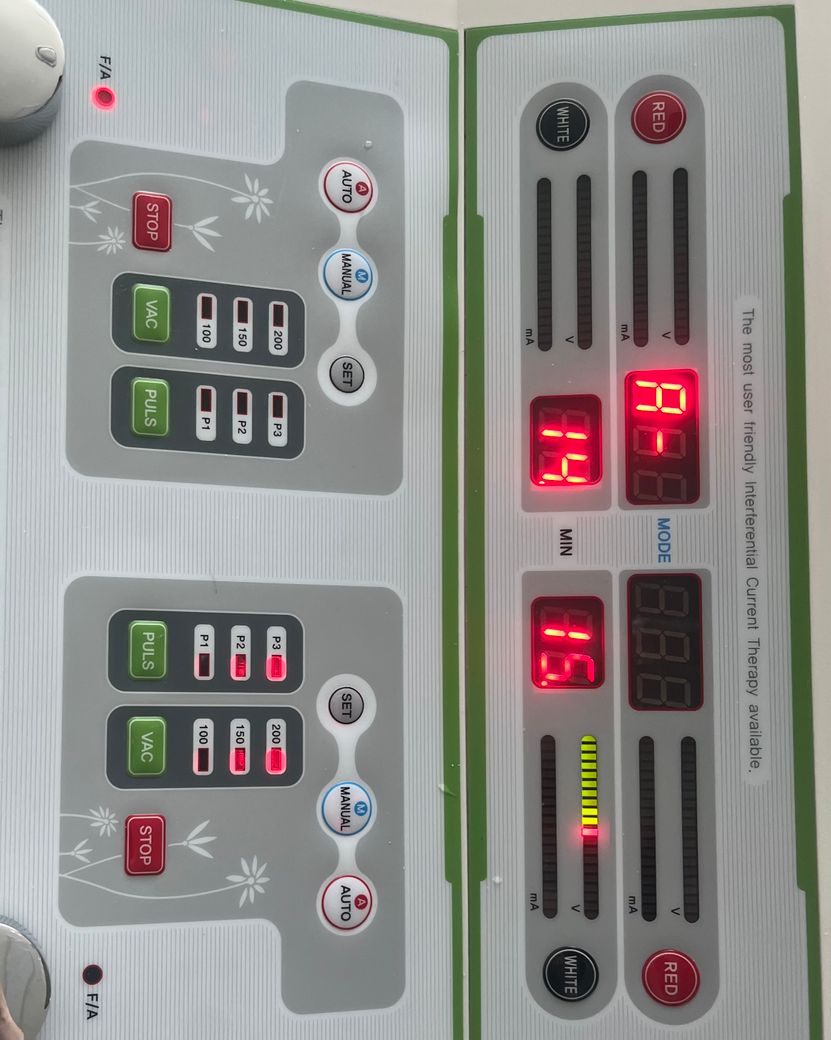 부착방법과 사용방법에는 크게 문제가 없는 것으로 보이는데요, 고장이 발생했을 수 있거나 간섭파 치료기의 선 연결상태를 다시 점검해보시면 좋겠습니다. 정확한 사항에 대해서는 제조사에 연락하시는 것이 좋습니다.