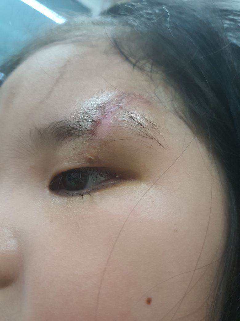 사고가있어 눈썹쪽에 봉합하였었는데 오늘 실밥을 풀고왔습니다