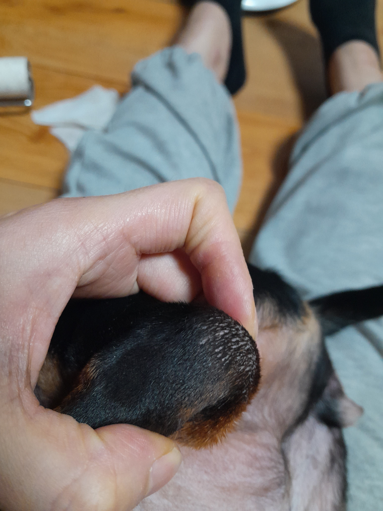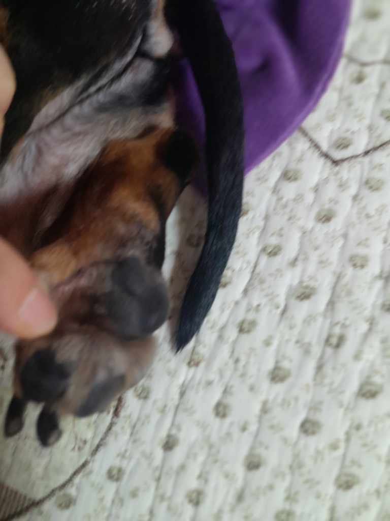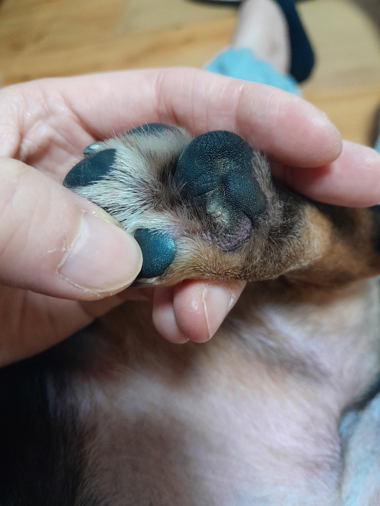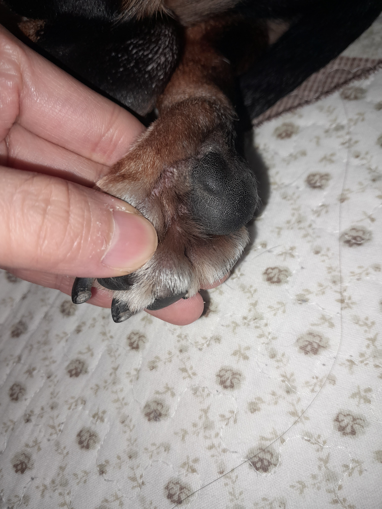 산책 후 발바닥 닦아줄때 앞발은 가만히 있는데 유독 뒷발닦을때만 불편한지 발을 잡고 있으면 막 빼려고합니다. 심하게 뿌리치는건 아닌데 첫번째 사진 발바닥보시면 전에는 살짝 하얀정도로 비춰졌는데 지금은 저렇게 굳은살, 사마귀처럼 딱딱하게 뭐가 났어요..
