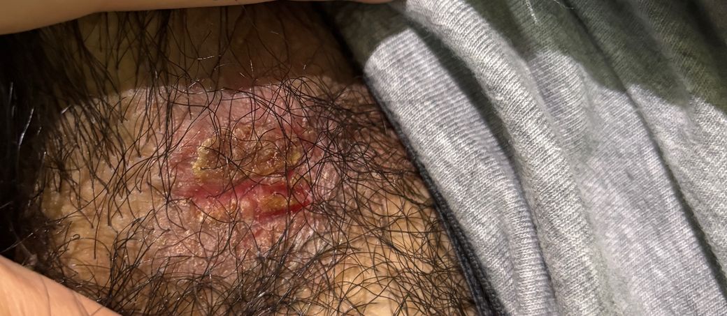 며칠전 음경옆에 음낭과 음경을 이어주는 부분이 간지러워서 긁었는데 최근에 보니까 딱지가 앉고 저렇게 빨간색 테두리가 생겼습니다 딱지를 떼면 진물같은것이 아주 작게 나옵니다 최 근 1년간 성관계를 한적이없어 성병은 아닌듯한데 치료 어떻 게하면 좋나요? 가만히 놔두고 가려워도 안 긁어서 자극을 주 지않으면 괜찮나요?
