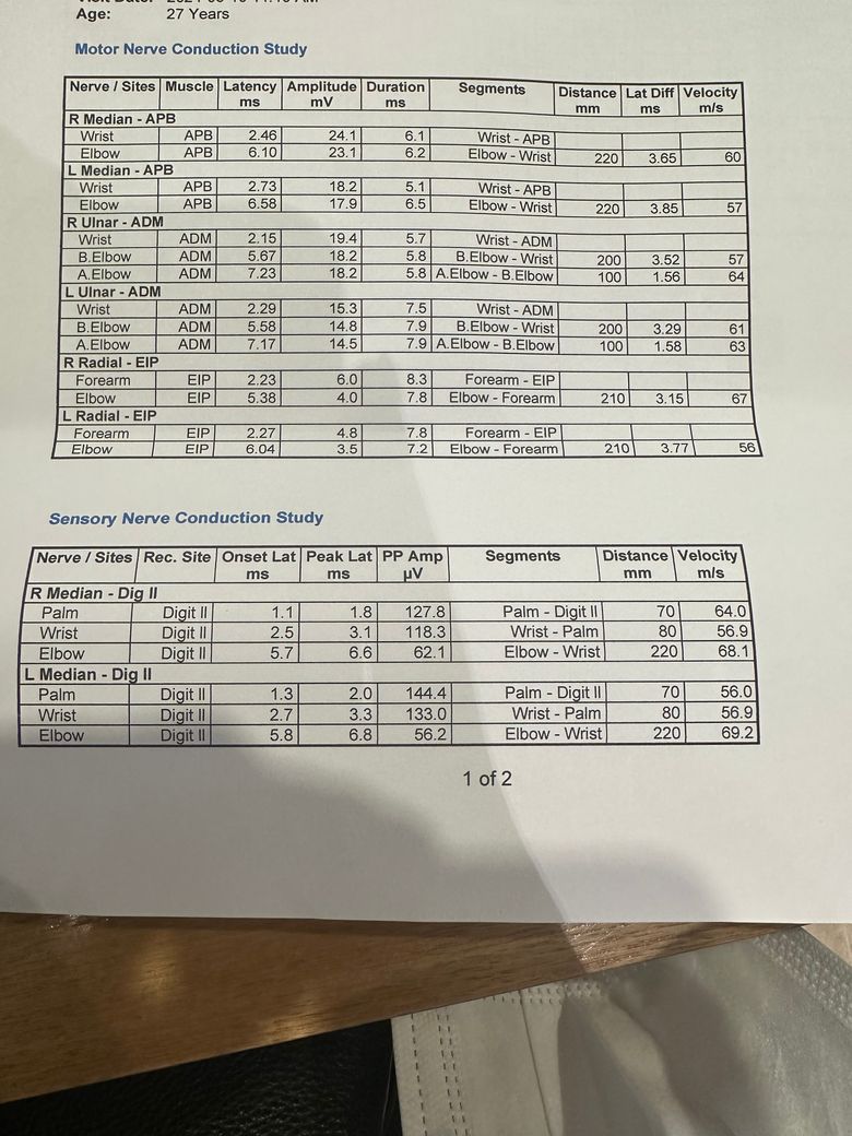 손이 저릿저릿해서 신경과 의뢰받아 검사 받았는데 목 신경이 눌린 것 같다고 결과지를 주셨어요