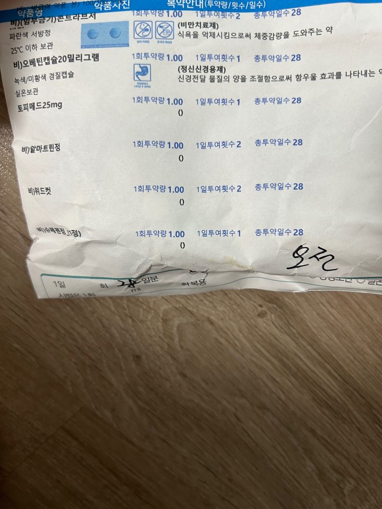 하나는 비만치료로 받은 메인 식욕억제제성분이랑 기타 약이고 하나는 정형외과 치료로 먹는 소염진통제에여