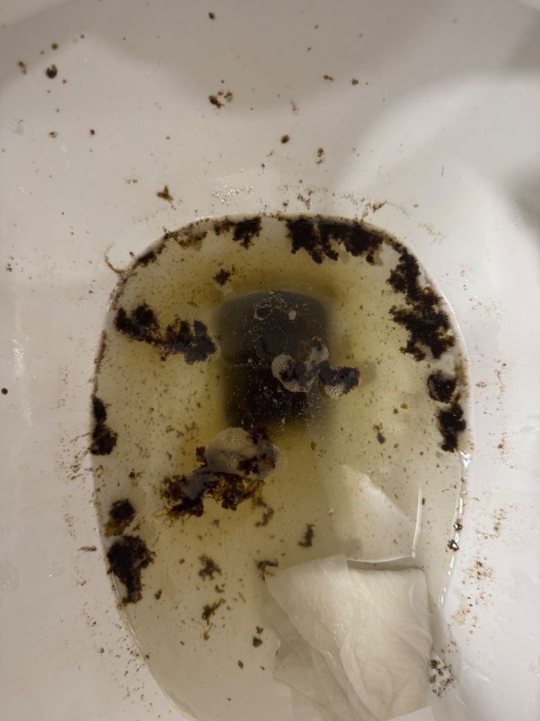 흑색인건가요? 쿠앤크 아이스크림 먹고 삼겹살 상추 돼지껍데기 이렇게 먹었습니다 처음엔 정상변으로 길게 나와서 똥꼬가 조금 찢어저서 피가 나오고 그후로 저렇게 설사가 나왔습니다 2번 설사했습니다