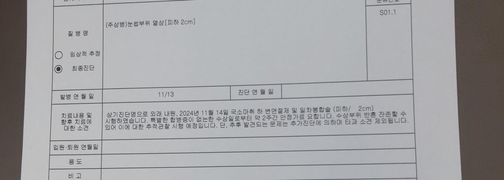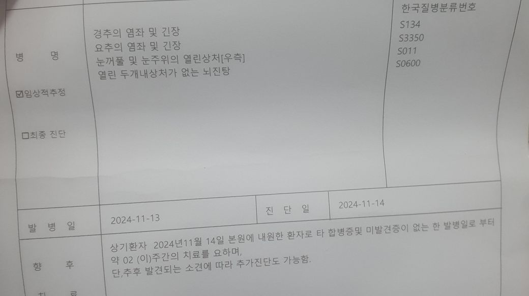 진단서 첨부 올려드려요, 많은 답변 부탁드립니다