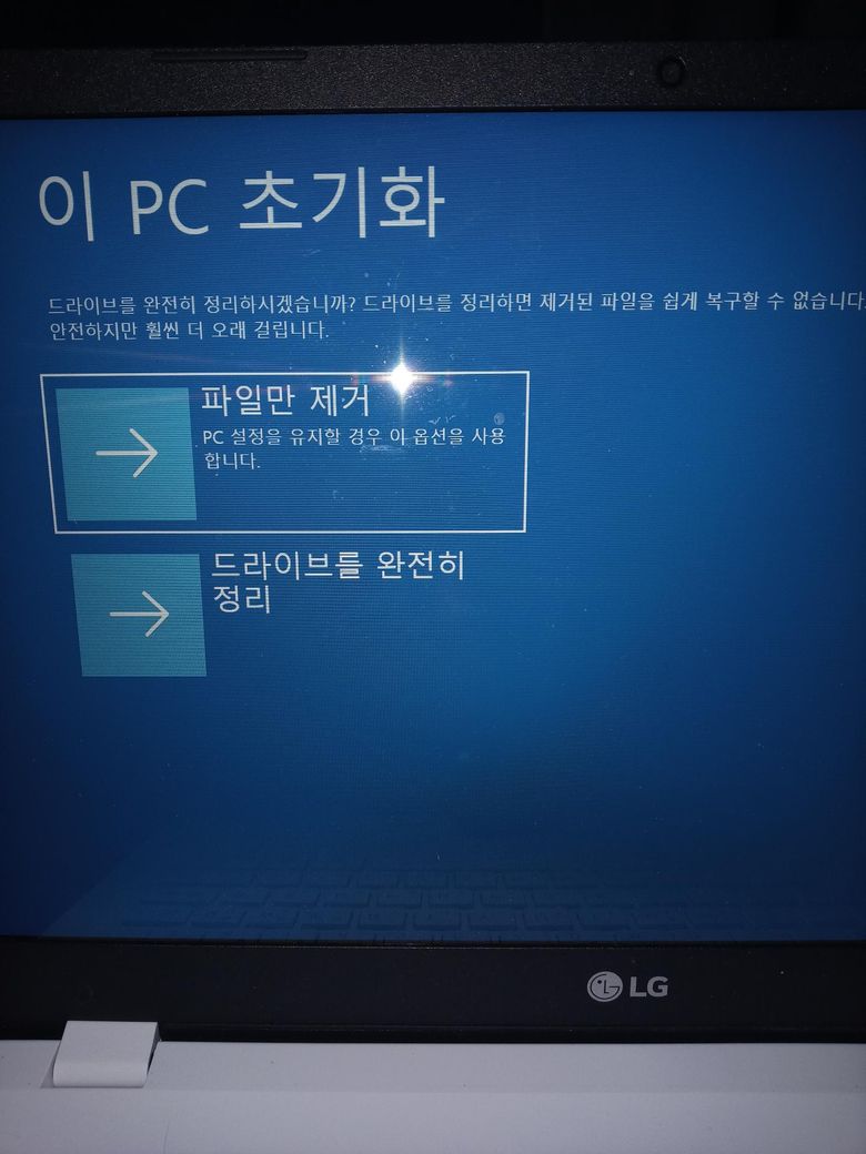 pc가 블랙화면만 나와서 초기화 시도중에 pc 화면상에 사진과 같은 단계에서 초기화를 취소 하려면 어떻게 해야 하는지요? 키보드가 먹히지 않아요.