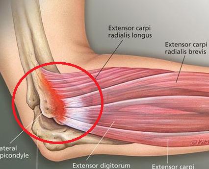신찰을 해봐야겠지만 아래 그림과같은 부위에 통증이 있으신게 맞다면 외측상과염이 그 원인일 가능성이 높겠습니다.