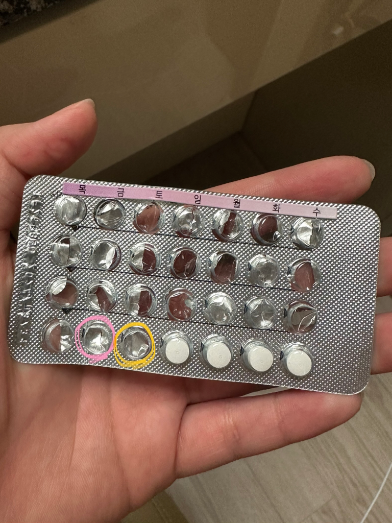 분홍색 정제가 남아있지 않으므로 휴약기를 갖은 뒤에