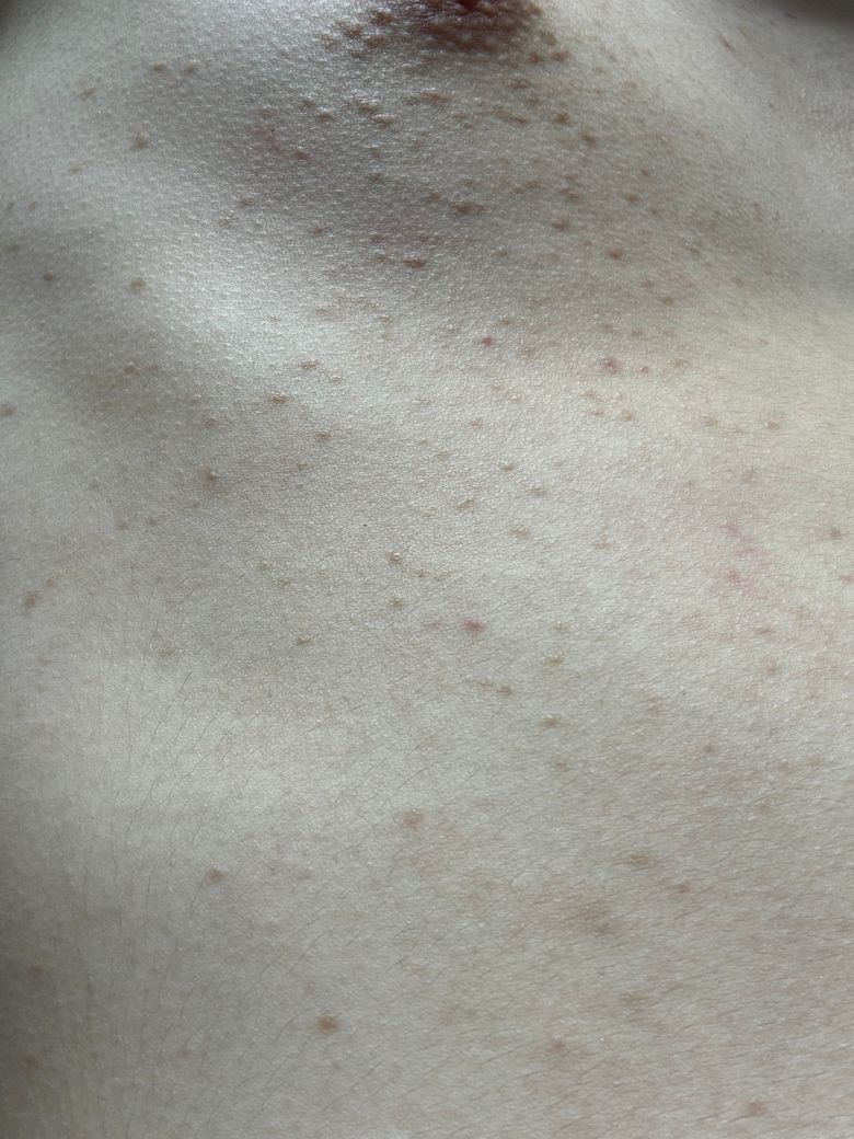 팔과 몸에 수 많은 병변이 있는데 모공각화증인가요?